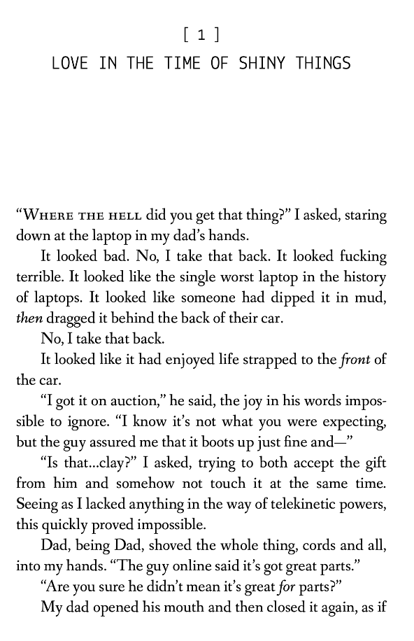 A chromatically impaired art student does her best to accept the gift of a suspicious laptop, including the unknown color emanating from it.